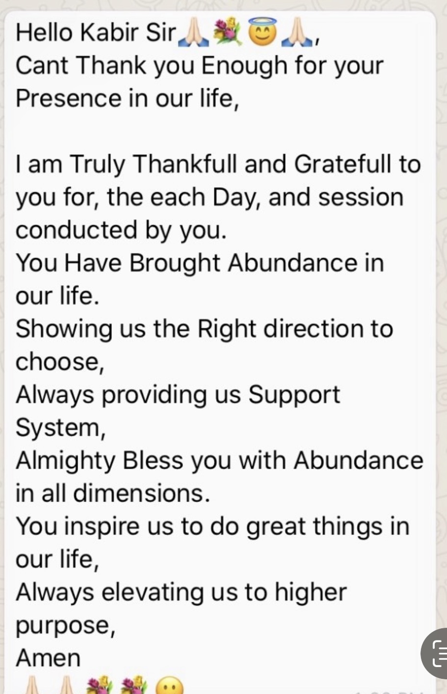His work and depth have been recognized and acknowledged by globally respected spiritual and institutional leaders like His Holiness The Dalai Lama, Adani, Satya paul etc..